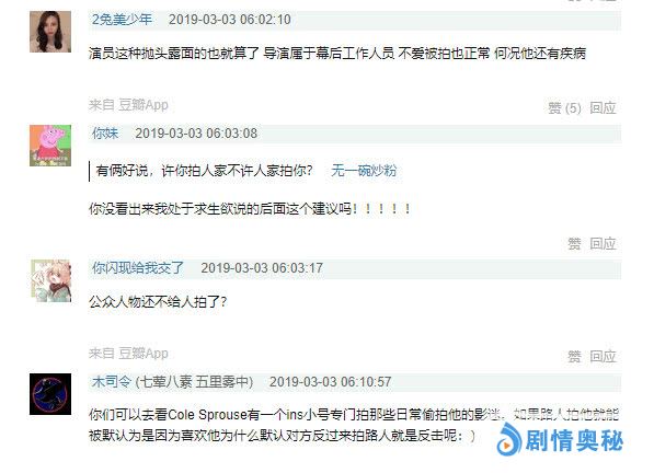对于这件事,网友的评论两极分化,有人认为,作为公众人物,在私人时间不喜欢被偷拍正常,可以选择沟通让对方删掉照片,但“拿手机拍普通人十几分钟是什么骚操作?”