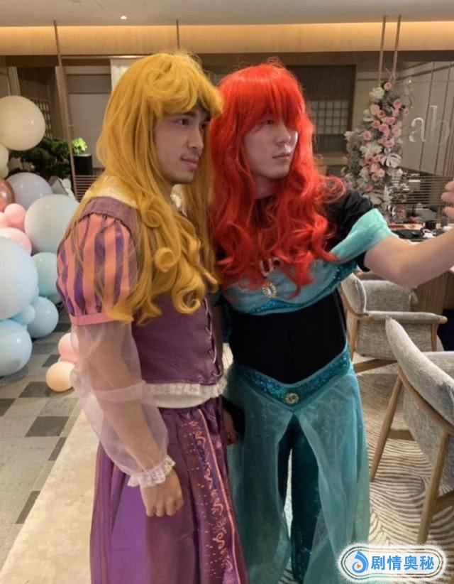 baby扮成了冰雪女王,其余的人有的扮成了白雪公主,有的扮作了灰姑娘,还有漂亮的睡美人。最搞笑的,该是baby的弟弟了。他直接穿上了公主服,带上长长的黄色的卷发,愣是搞笑的做了一副公主打扮。明显的胡茬,还有比较强健的身材,和他的扮相形成了很大的反差。