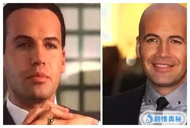 这位是女主rose的未婚夫,在影片中是个骄傲跋扈不可一世的超级富二代,很像一个贵族王子,而现在,20多年过去了,他的脸上明显多了许多皱纹和胡渣,面临中年脱发危机,头发几乎已经接近秃顶,从电影中的贵族绅士变成了现在的脱发大叔。