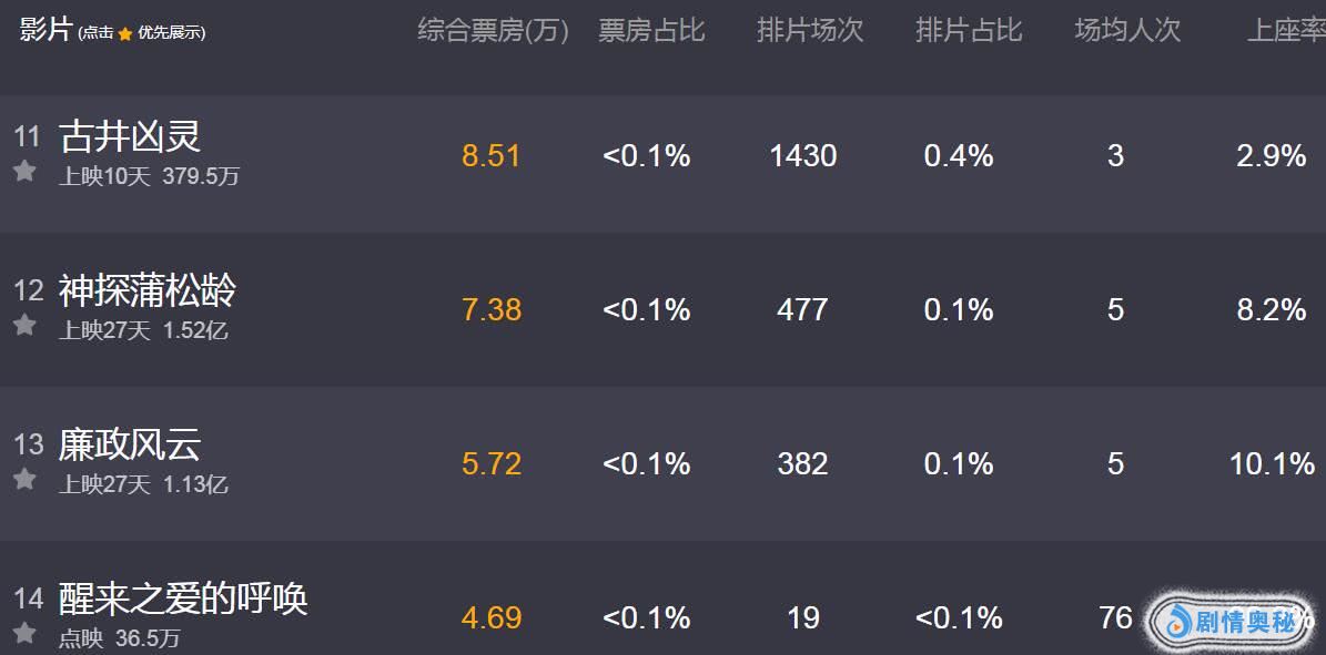 《廉政风云》票房已经接近尾声了,排片量所剩无几了,目前实时5.72万(截止21点10),上映27天累计1.13亿元。春节过完后该片的票房几乎是原地不动,这个成绩不算很差,但是对于一部巨星云集的大片来说说扑街也不为过。从近些年春节档影片的成绩看,能进入春节上映几乎等于稳赚不赔,去年郭德纲《祖宗十九代》被院线抵制,最后票房不也大卖1.7亿元。
