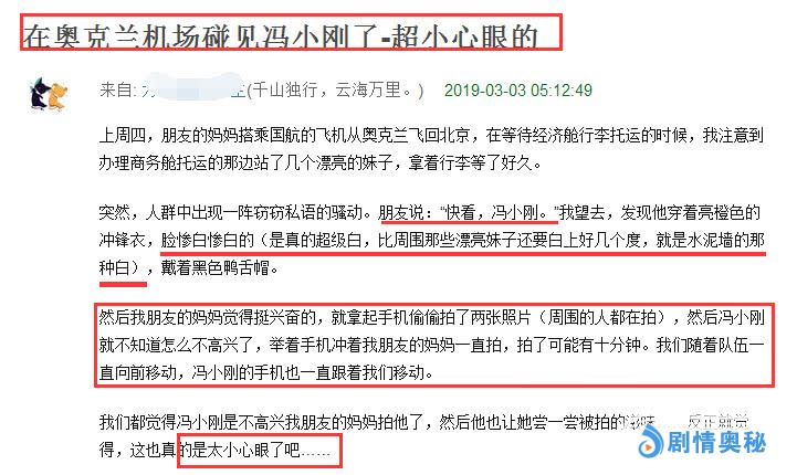 3月3号凌晨5点多,有网友爆料说碰到了冯小刚。爆料者指出,上周四,朋友妈妈从奥克兰机场飞回北京,在等待托运行李时听见人群出现骚动。