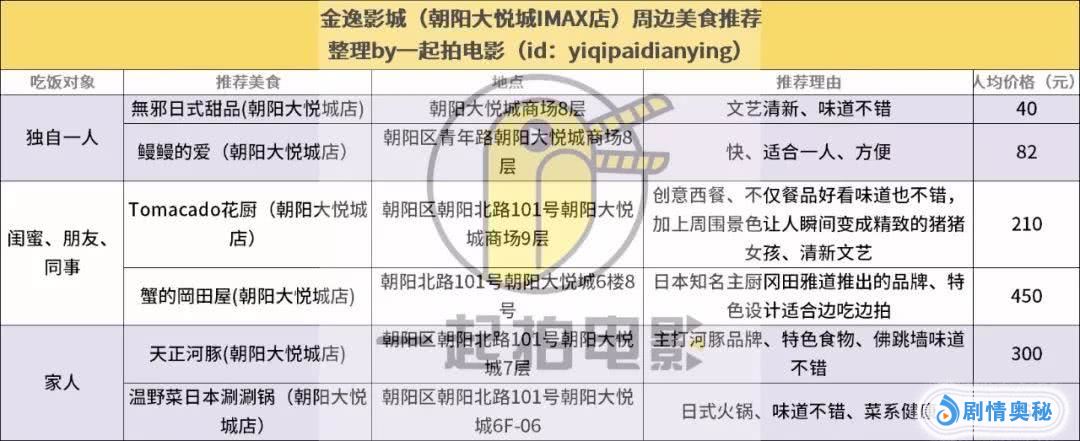 北京城很大,拍sir推荐的影院和美食数量非常有限。也因为存在个人喜好差异,可能不能做到面面俱到,人人满意。所以,欢迎有识之士在文章下面留言与拍sir交流更多的影院与周边不可错过的美食,让更多人有选择的余地。