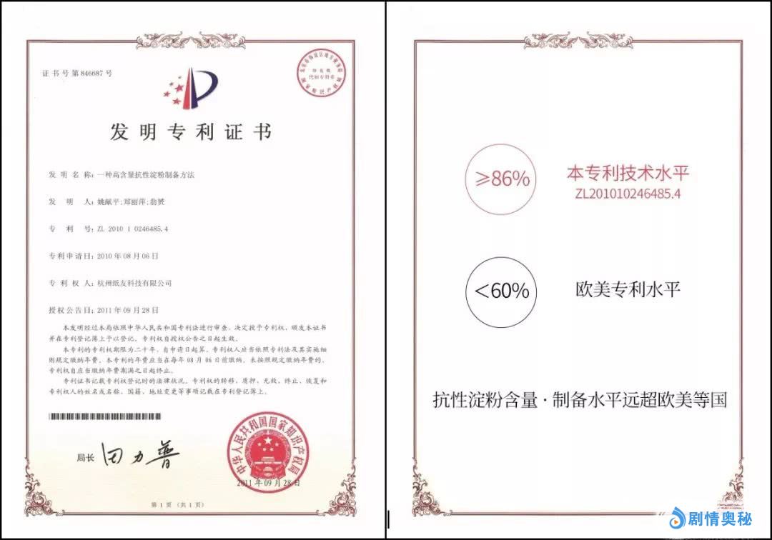 我们这项抗性淀粉的专利水平,