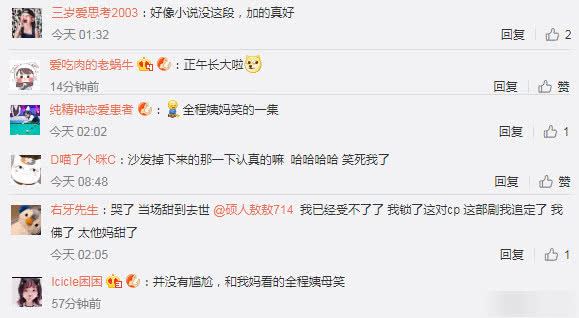 “正午长大啦!全程姨母笑。”对于明玉的主动,网友们虽然吃惊,不过还是看得很过瘾。在小说的基础上加了段情感互动,贴切又贴心。而当石天冬因为情绪激动从沙发上掉下的那一刻,大家更是发问这样搞笑是认真的?是不是太不给小奶狗面子了!成年人的爱情,充满了包袱。