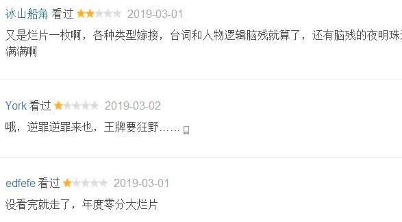 很多网友对该片也非常不满意,直言“烂片一枚”、“年度0分烂片”,很无奈。