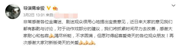 于是导演在微博上发文:“竭尽所能,不求圆满”,所以在本周的剧情中相应的慢动作应该会减少。