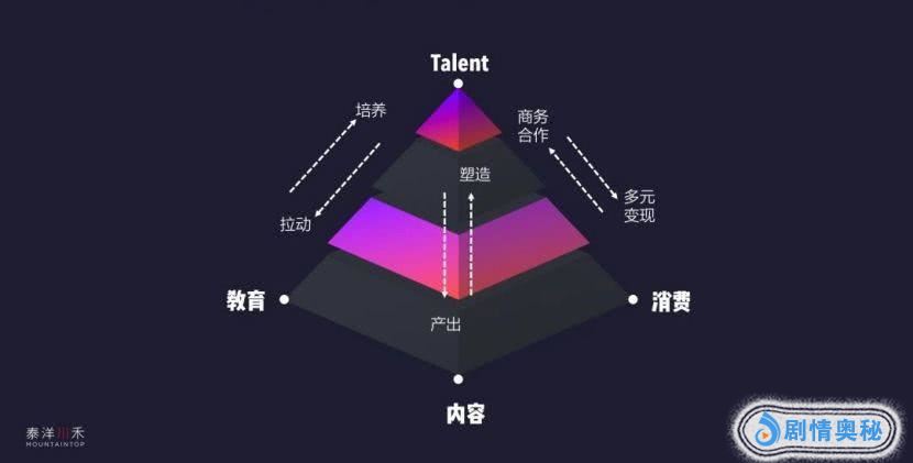 “其实都是基于核心业务需求向外延展,建立起艺人、内容与品牌客户三者之间的有效连接。”王海平认为。泰洋川禾制定了围绕Talent(人才)的“教育-内容-消费”三棱锥战略,从源头提升人才素质,并为其拓展内容资源和商务方面的多元化变现。