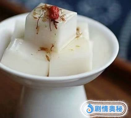 接下来的这款甜品也是我们大中国最传统的杏仁豆腐。杏仁豆腐其实并不是真正的豆腐,主要是用甜杏仁磨浆之后加水煮沸,等待凝结滞后期会因为他长得像豆腐,所以就取了这个名字,加上糖桂花以及装饰,它的口感甚至比果冻还要细腻。