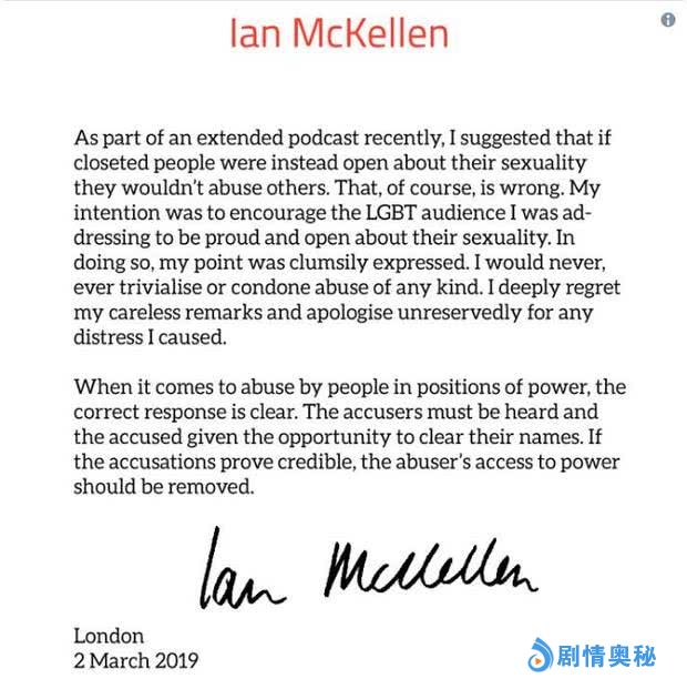 道歉信最后,伊恩声明,“当位高权重的人进行性侵时,正确的回应非常明确。提出指控的一方必须有发声的权力,被指控的一方要有机会为自己正名。如果这一指控被证明是准确的,那么进行性侵的人,他的权力应该被移除。”