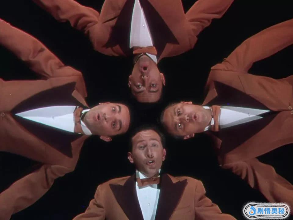 斯坦利和吉恩·凯利还发明了一个万花筒镜头,来讽刺他们都不喜欢的巴斯比·伯克利式歌舞片风格。