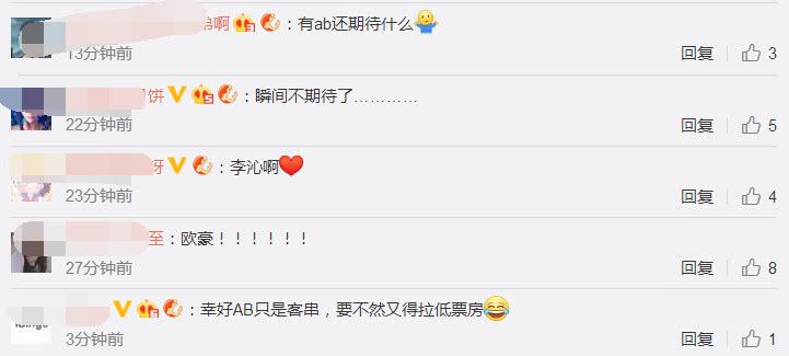 不少网友表示不期待:angelababy做个花瓶不好吗?有ab这部戏我觉得就已经毁的差不多了!有ab还期待什么?瞬间不期待了!幸好AB只是客串,要不然又得拉低票房。请问吃瓜群众们,你们还期待这部片子吗?