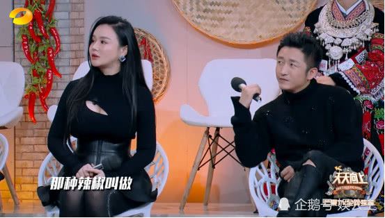《天天向上》在这一期中邀请了这夫妇俩。冉莹颖下面穿着松糕鞋,一条黑丝袜配着小黑裙,还戴着一个是皮子料的束腰。夫妇俩都穿的是一身黑啊!