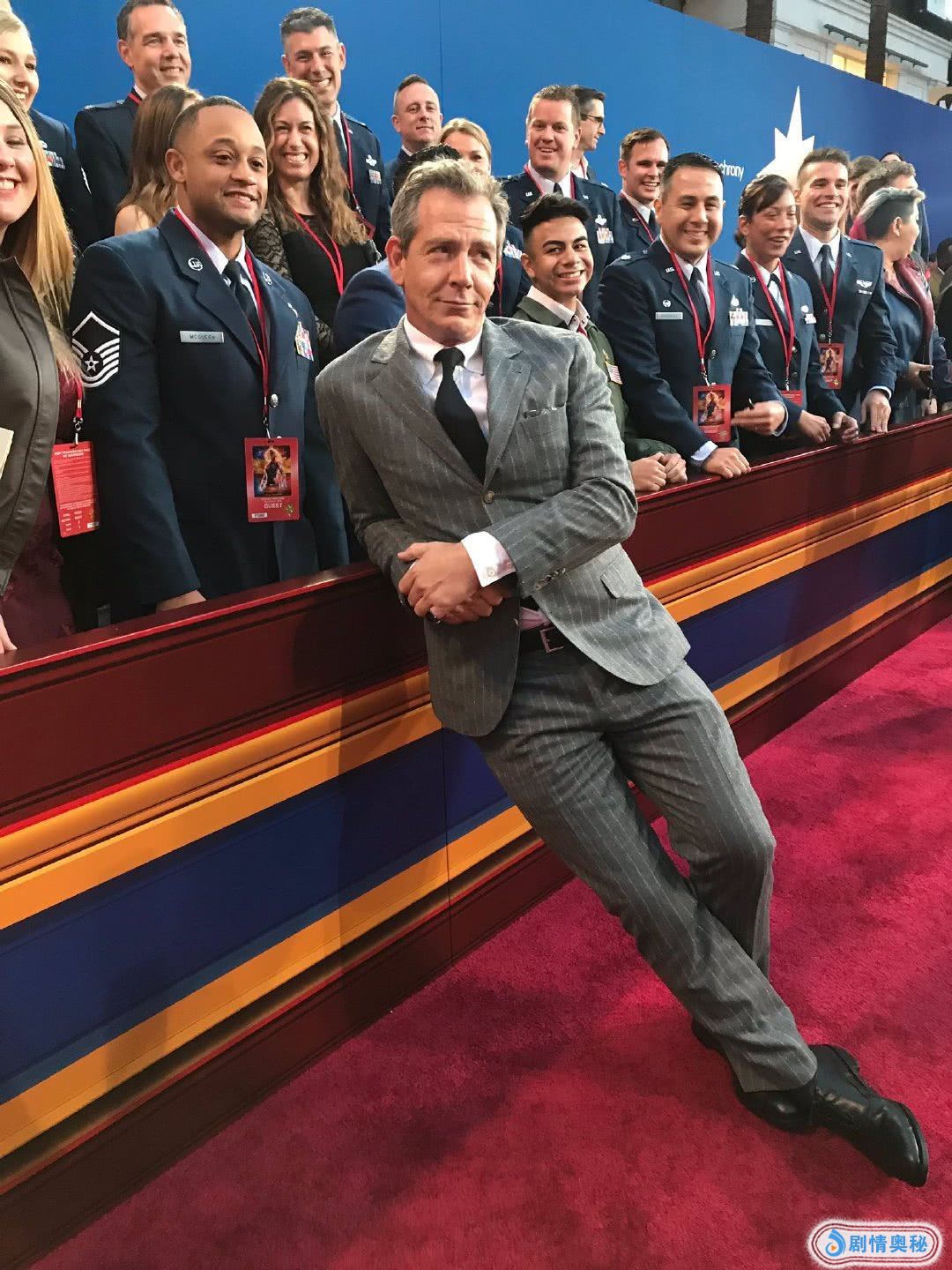 《惊奇队长》的全球首映礼,不只有战斗机,飞行员的代表也来了,主创们还和他们一起合影,这也是一个致敬的环节。
