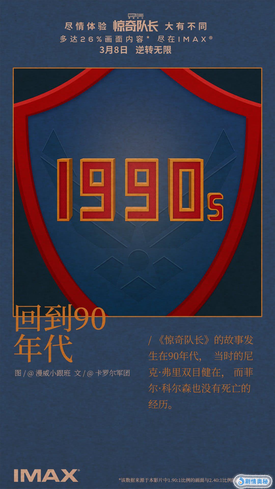 电影《惊奇队长》的故事背景设定在20世纪90年代,在这个时间点上,尼克·弗瑞双目健在,菲尔·科尔森也还没有被洛基“杀死”。
