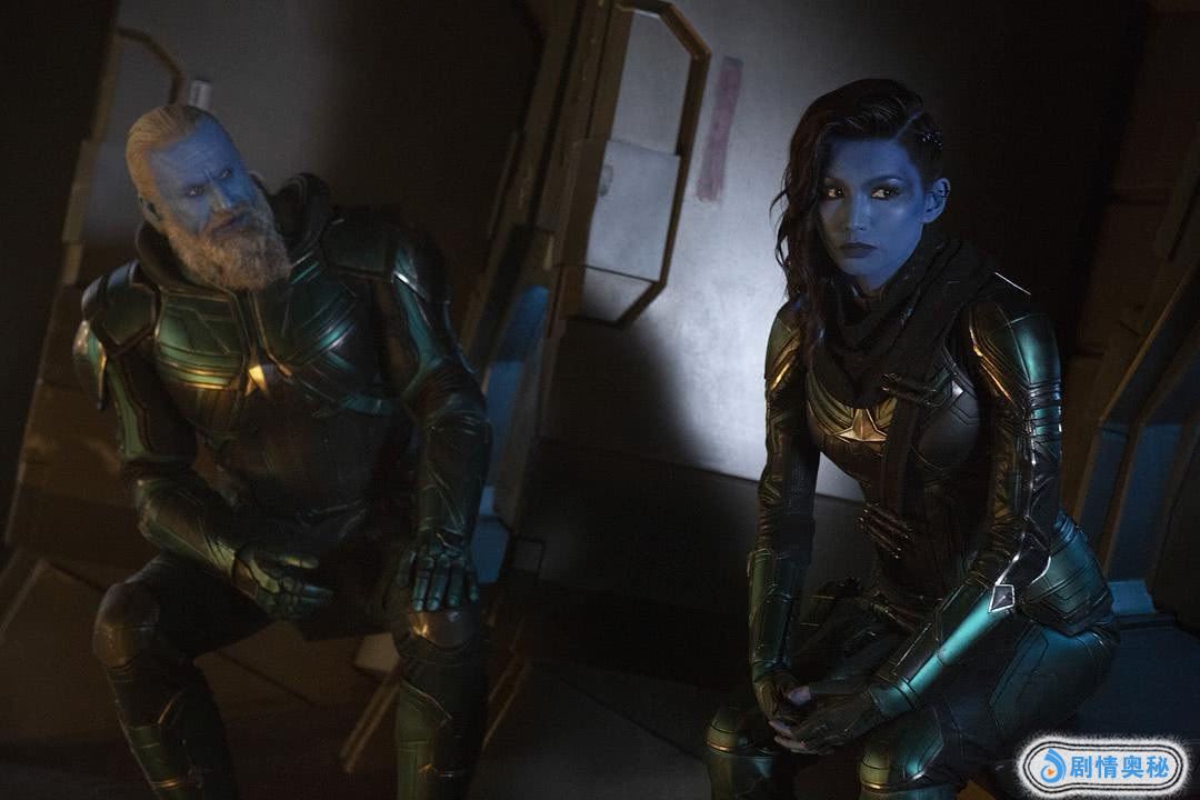 外星生命的一大特色,就是他们有各种颜色的皮肤,造型也比较夸张,在《惊奇队长》中,就有着这样一批看不清脸的角色们。