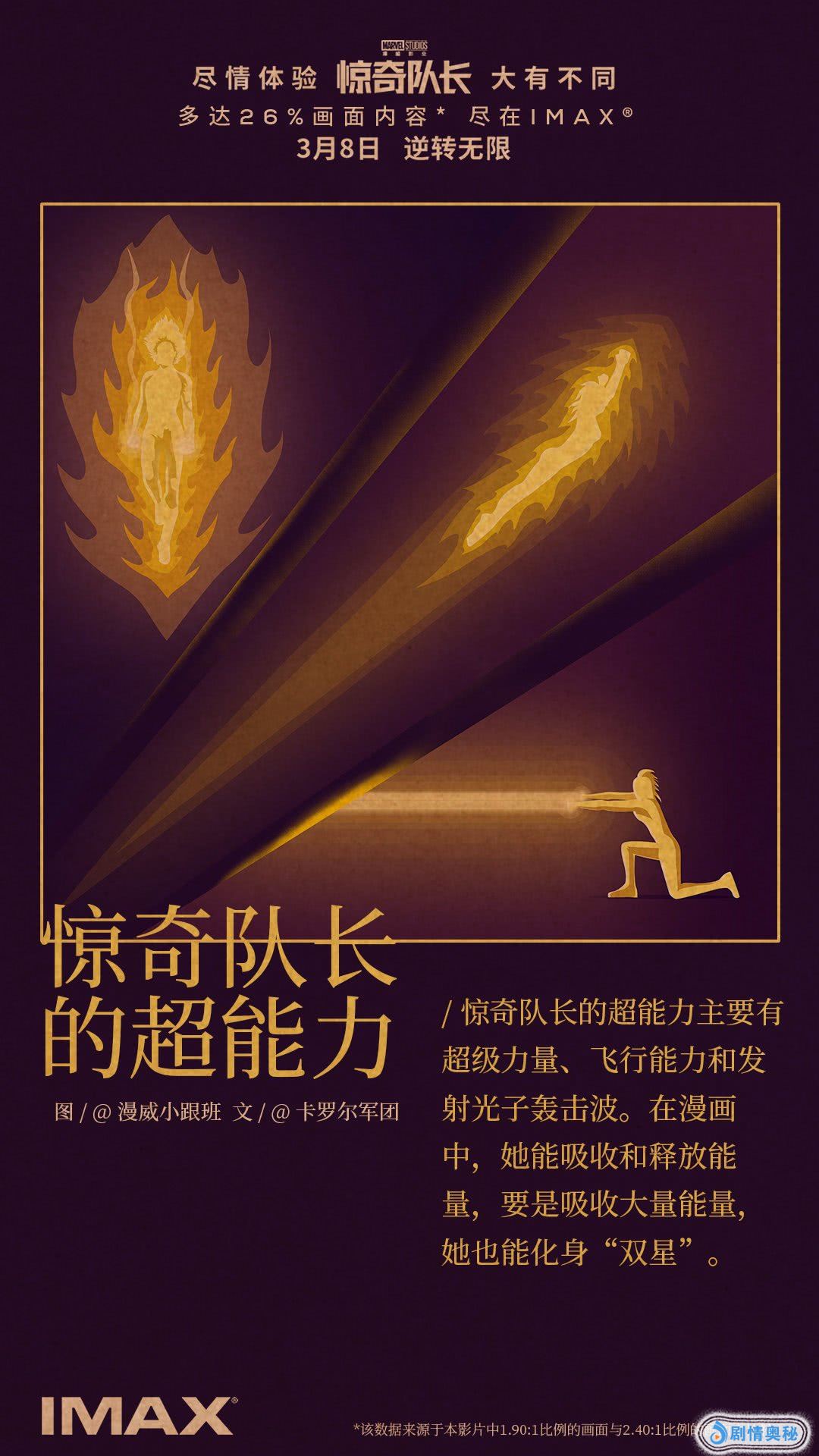 吸收能量,获得飞行能力,双手可以发出光子轰击波,一拳打爆飞船不在话下。《惊奇队长》3月8日全国上映,她会有怎样的表现,大家拭目以待。