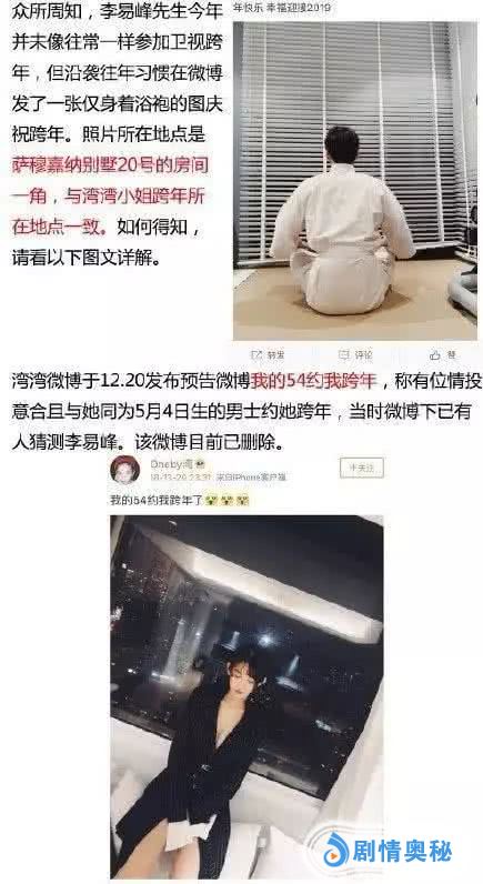 起因是李易峰在跨年发了这样一张浴袍照,而湾湾则早已预告“54约自己跨年”(李易峰生日为5月4日)。