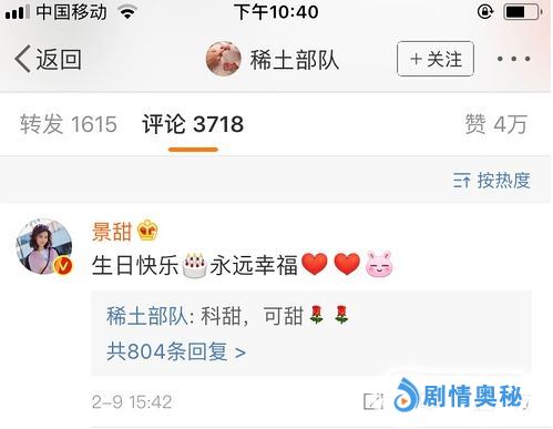景甜为章子怡送上生日祝福,而章子怡则是回复:“科甜,可甜。”