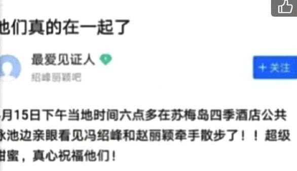 还有网友爆料曾在泰国偶遇冯绍峰和赵丽颖同行!画面十分甜蜜!