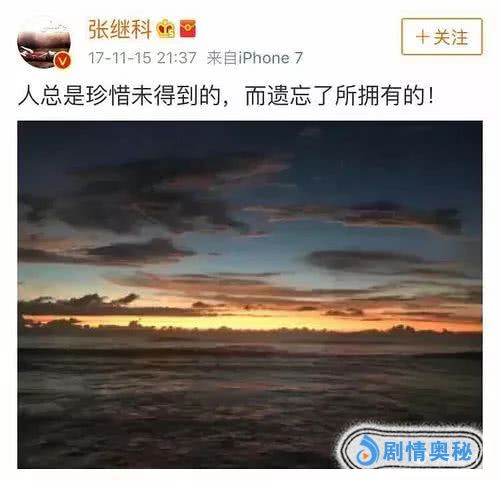 2017年10月,张继科发博:“信任与珍惜并存 。”并配上一张喝茶的图片。