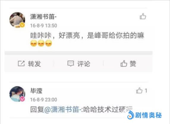在毕滢微博搜索“峰哥”,各种暧昧小语气还蛮多的,不知道的人还以为他俩是情侣。