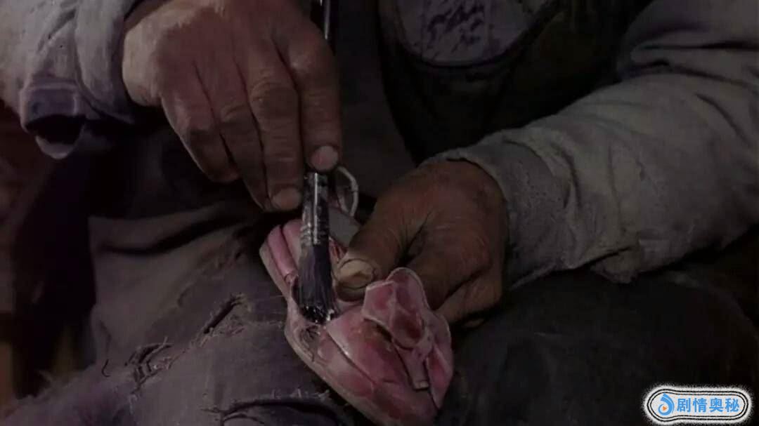 重在细节,细节,还是细节!影片的一开头,一位修鞋匠在修补一双已经像褪去颜色的鞋,画面的灰色系,让整个气氛显得暗淡无光,修鞋匠黝黑的手,粉色的小破鞋,修补工具的简陋,就为他们的生活,蒙上了贫穷的阴影。