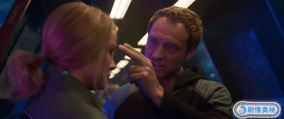 预告片中第一幕惊奇队长地铁上殴打一位老太太,不知原委的观众恐怕会认为惊奇队长是位残暴的妇女,其实这一位老太太是斯库鲁派来地球的间谍。她以为换了身人皮别人就认不出他来了,真的是太小瞧惊奇大妈了。而且预告旁白也说了,斯库鲁人是大大的坏人,妄图侵略地球,而惊奇队长是克里人。