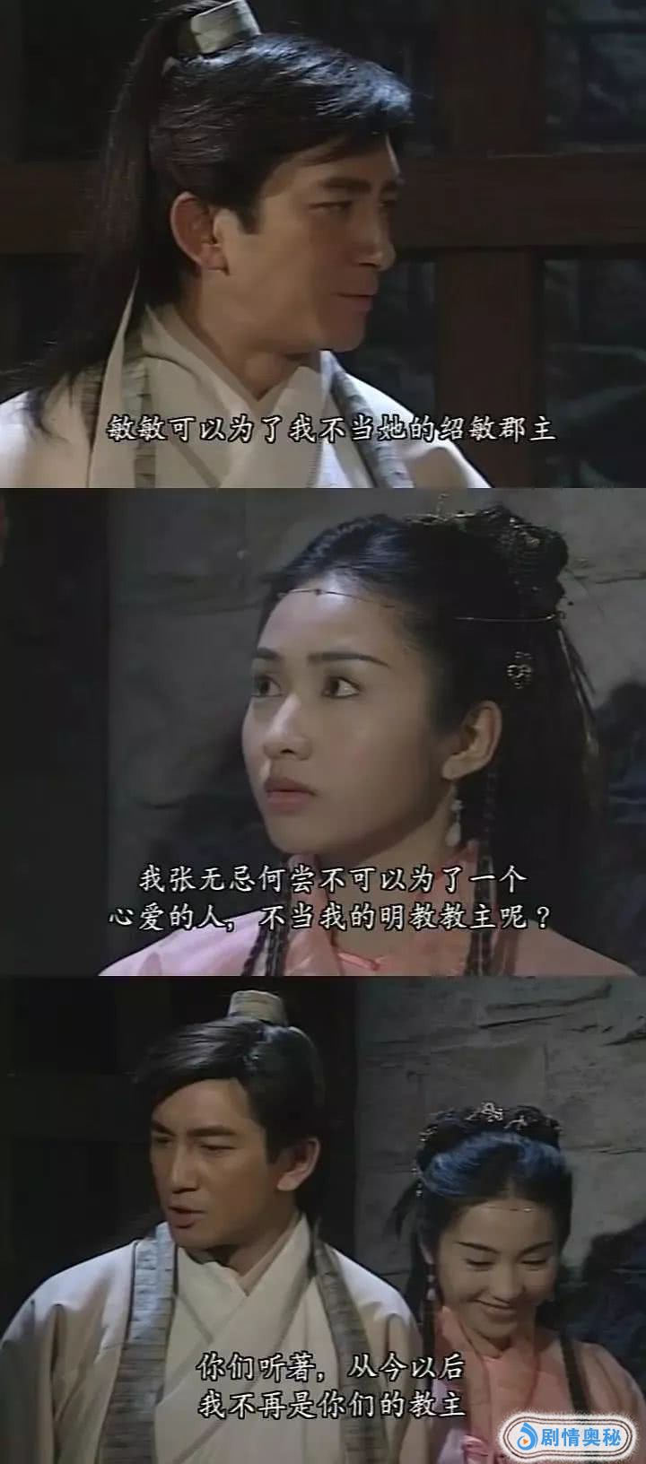 另外,《倚天屠龙记》重点并不是风月,而是侠义,比起男人和女人的纠葛,更明显表现男人和男人的纠葛。