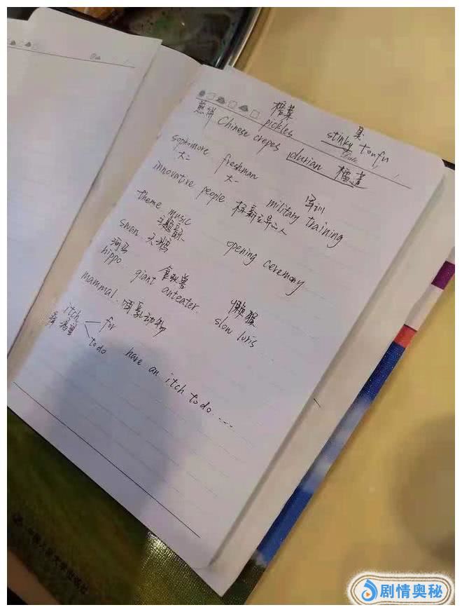翻开其中一页的笔记,内容更是让人极度舒适。平时看起来就非常认真严谨的易烊千玺,原来学习的时候更加仔细呢,这笔记记得相当工整,字也写得漂亮得让人羡慕。这笔记上还有亮点,不知道网友发现没有,易烊千玺把榨菜、臭豆腐、榴莲这几个单词特意用横线画了下来,看来是对这几样食物爱的深沉啊。