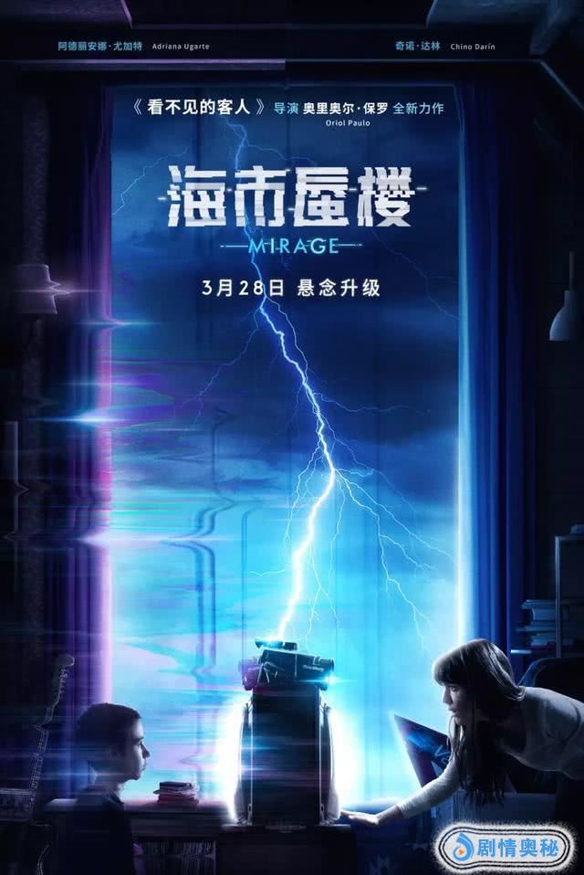 阴云密布的天空、忽明忽暗的灯光、旧式电视机画面中出现的陌生男孩……预告片一开头,就弥漫着扣人心弦的紧张气氛。而随着预告片剧情发展,也透露出了此次影片当中的关键剧情——两位主人公通过平行时空进行对话。这一次,《海市蜃楼》主打平行时空概念,讲述25年前一个风暴将至的夜晚,小男孩尼克目睹了邻居杀妻的全过程,被凶手发现的他在逃跑途中被车撞死。尼克死去25年后,幸福的已婚妇女维拉(阿德里亚娜·乌加特饰)搬进了尼克住过的这所房子。