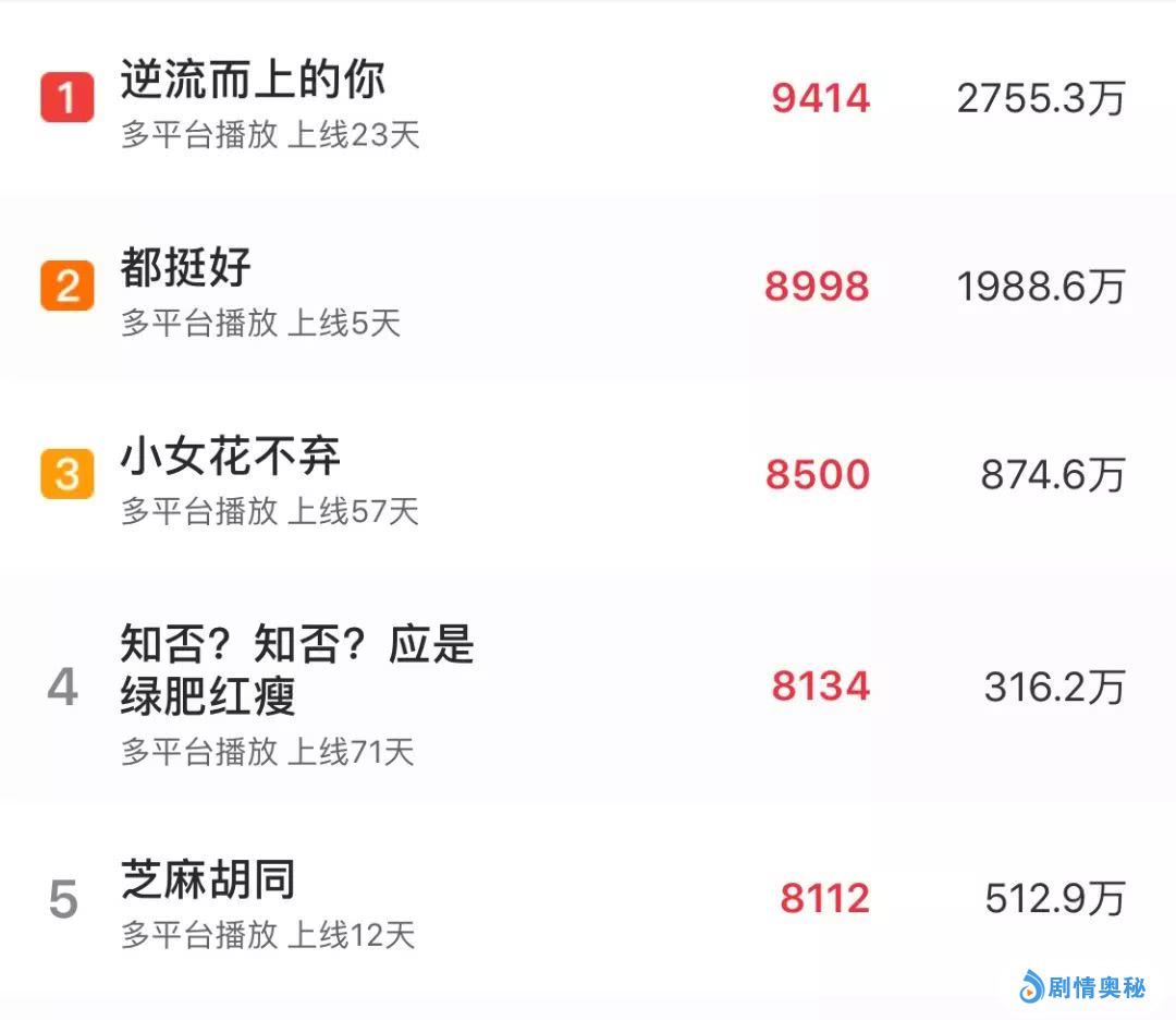 果不其然,剧集开播五天,收视率就直升至第二名。