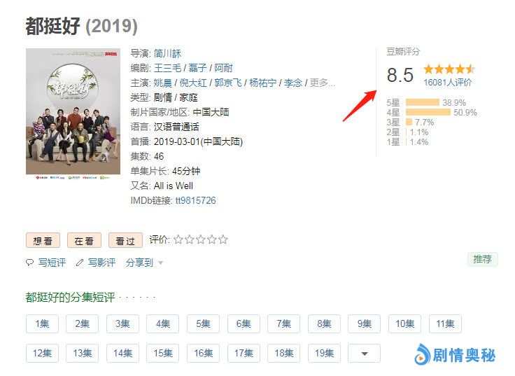 近日,一部由正午阳光出品,简川訸执导,侯鸿亮担任制片人,改编于阿耐同名小说电视剧《都挺好》于3月1日在浙江卫视、江苏卫视以及多个平台热播后,不仅备受瞩目,该剧还因剧情贴近现实,人物丰富立体,以及写实的风格获得剧迷一直好评,同时该剧在热播的情况下,也积累了不少观众良好的口碑,豆瓣评分一度高达8.5分,几乎是成为了2019年开年第一部爆款良心剧。