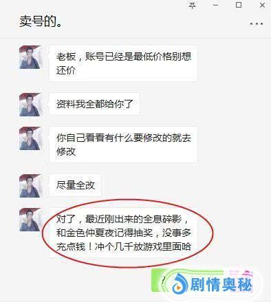 但买家号到手了,什么都在自己的手里,自己却将铭文什么的全都分解了,这究竟是什么操作的呢,这一操作也令人瞬间的惊讶无比啊,自己买的号咋就自己还分解了装备呢,很是不解,但这却是缘由卖家,一句“刚出来的全息碎影和金色仲夏夜记得抽奖,冲个几千放游戏里面”