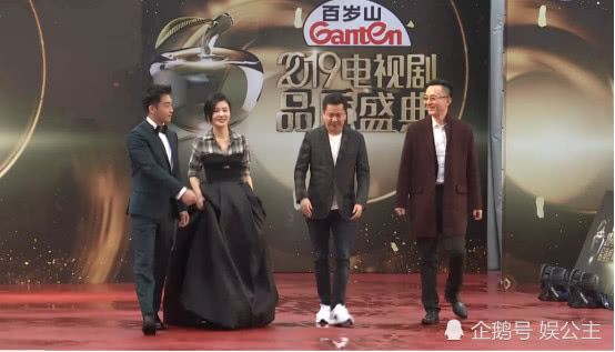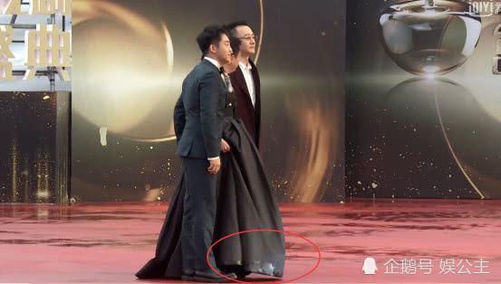 其实男明星还好,因为他们穿的几乎都是西装和皮鞋。但女星就不容易了!不仅仅要穿着高跟鞋,还有穿着拖尾,淌地的长裙,就说这第一个上场的杨子姗。自己一个人完全弄不了这大长裙!偶尔还是郑恺帮忙提着。