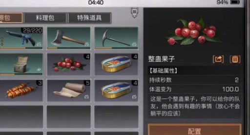 几乎每一个地图里面都会出现浆果这种食材,四个浆果就可以和集成一瓶果酱,但是在特殊的时候,有的时候就要直接吃掉,将果实才不知道你有没有碰到过特殊的浆果呢?这种名字叫做整蛊果子不会加血,它会让你的体温变成1℃持续两秒钟还有另外一种整蛊果子,能让你的体温瞬间变成100°,同样也是持续两秒钟。
