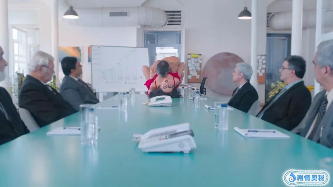 然后,全身只有一块布料的男人爬上了会议桌,朝女人扑去。