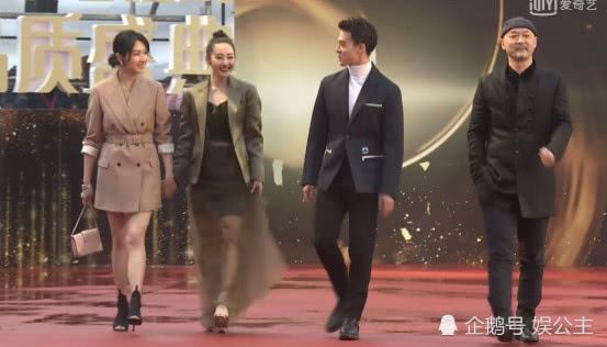 其实在公共场合上应该是男士照顾女生多一些,但李纯不仅穿着长裙走着湿漉漉的红毯,还照顾其他的两个男生!真的很热心了。