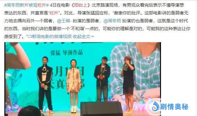 视频里的观众质问导演张猛,称《阳台上》转场生硬、配乐尴尬,甚至称其为圈钱的烂片。