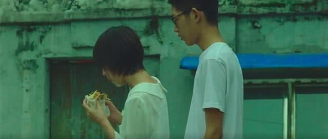 片中的一幕,当张英雄靠近陆珊珊说“跟我去白相(上海话,玩)”时,周冬雨吃着饼子,本能的撤了一步。