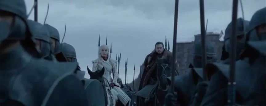 雪诺和龙妈回到了临冬城,阵势看起来相当拉风,雪诺还发表了战前动员讲话,预示着一场史无前例的大战即将展开。
