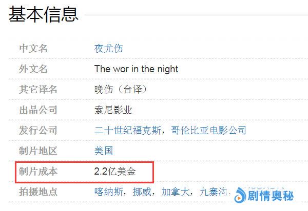 天价的制作费用,索尼自然能花大价钱请好演员,《夜尤伤》演员阵容完全能用“逆天”两个字来形容,主要演员包括李连杰、元华、张曼玉、黎明、孙俪、佟大为、金城武、姜文等十几位巨星!