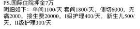 至于费用问题,之前网络曝光的价格是1天1万块左右,实际上,该医院押金70000元,套间每天1800元,侧切6000元,无痛费2000元,接生费20000元,新生儿每天护理500元。