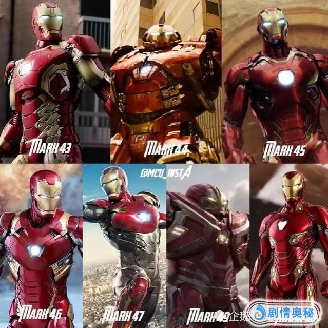Mark43是42型号的升级版,在复联二中登场过,Mark44相信很多人都十分熟悉了,这是第一套反浩克战甲,Mark49则是第二代,在复联三中却是由班纳博士操作的,Mark45有了流线型特性,由于贾维斯和幻视融为一体,操控系统换成了女性“星期五”, Mark46是内战战甲,在美队三战斗过,Mark47出现在《蜘蛛侠:英雄归来》中,Mark50是最新的血边战衣,那么Mark48去哪呢?