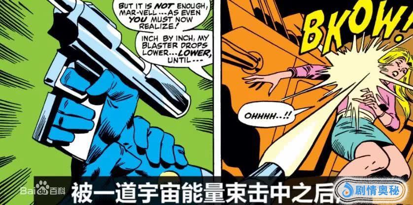 原漫画中,女主卡罗尔·丹弗斯被克里人的宇宙光束所击中,吸收了宇宙能量,从而拥有了几近无敌的超能力。