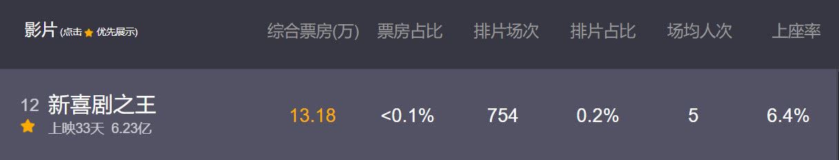 不过目前该片在电影院还有零星排片,截至23点《新喜剧之王》9号排片场次为754场,排片只有0.2%,日票房才13.18万,票房占比已经小于0.1%。这种票房数据也确实没有延期的必要了。不如趁着热度还在早点在网络上线