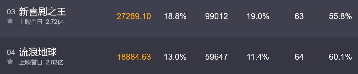 尤其是《流浪地球》仅用了一天时间就反杀了《新喜剧之王》