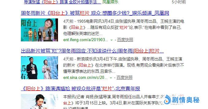 目前定档的《过春天》虽然口碑优秀,但文艺片的性质注定票房有限,周冬雨主演的《阳台上》同样如此,而且口碑似乎出了问题,在路演中被观众直接批评为烂片。让主创团队很尴尬。