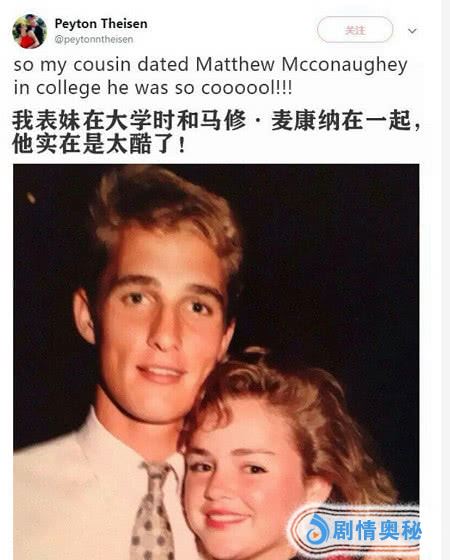 看了上面的帖子,都发现姑姑真的是一个神奇的存在,而接下来姑姑换成了表妹,这个朋友的表妹竟然和大学时期的马修麦康纳在一起过,而且那个时候的他实在是太酷了。去翻翻找找看看在你家的照片里面有没有一些明星的身影呢?小编先透露一个消息,小编也有这样一个明星朋友哦!