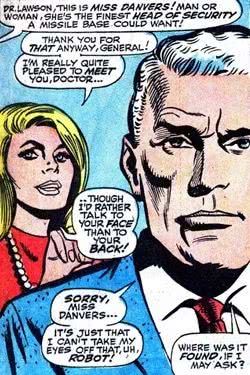 电影中的这位“惊奇队长”原名叫做卡罗尔·丹佛斯,是美国空军一位女飞行员。1968年3月,第一次在漫画《漫威超级英雄》13期中登场,是克里帝国战士——初代惊奇队长迈-维尔的同事。俩人还发生过一段感情。
