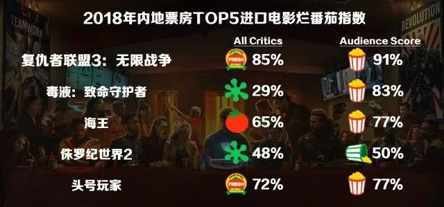 有趣的是,去年漫威爆款影片《毒液:致命守护者》在烂番茄上All Critics为29%,但Audience Score却高达83%,由此也可以清晰的看到,专家和普通观众对于影片内容的多样化差异。